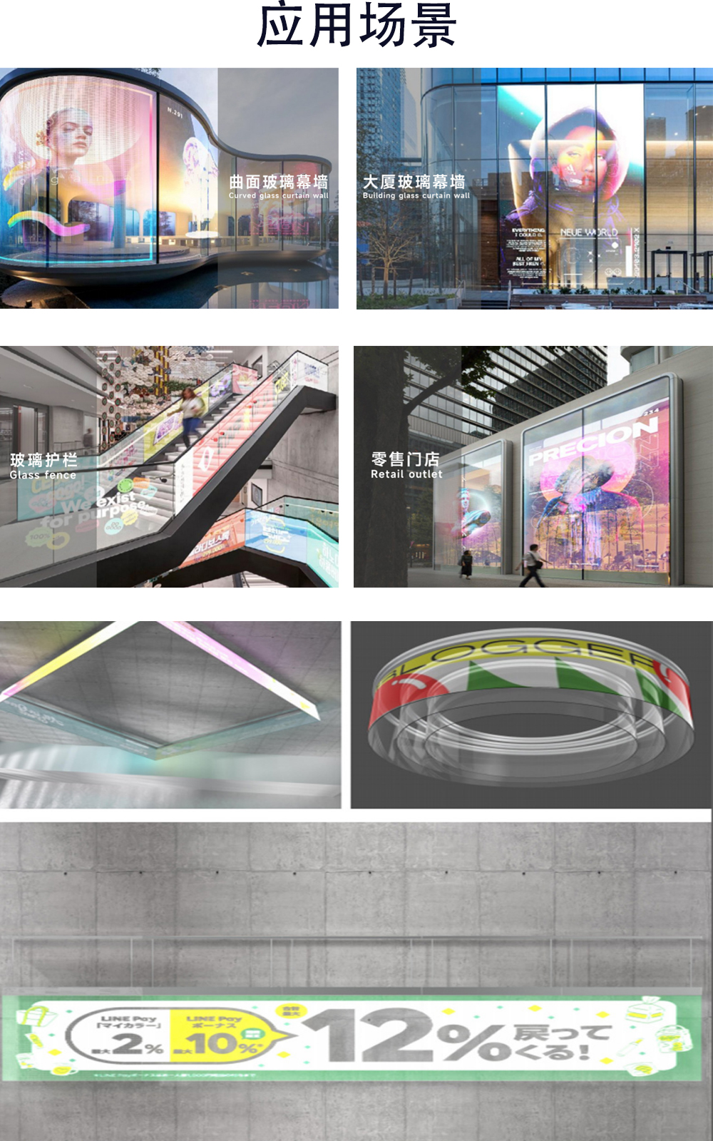 產(chǎn)品用途:商店櫥窗,商城,展廳,室內(nèi)戶外環(huán)境。