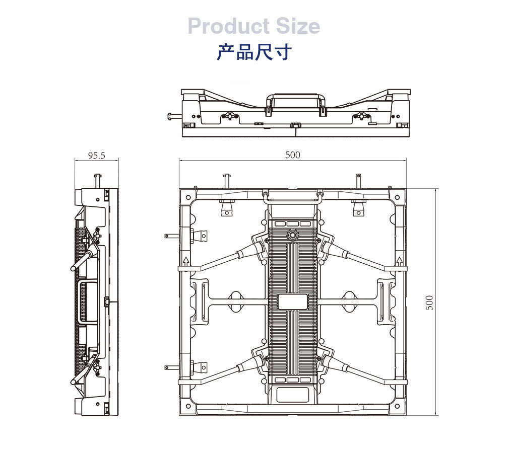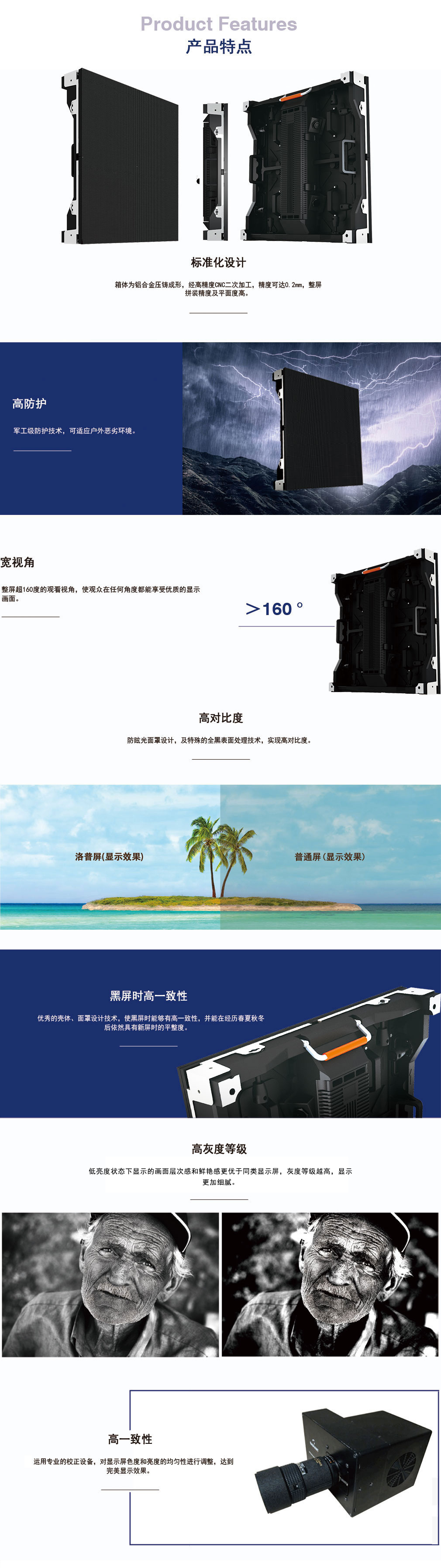 1. 標(biāo)準(zhǔn)化設(shè)計(jì),箱體為鋁合金壓鑄成形,經(jīng)高精度CNC二次加工,精度可達(dá)0. 2mm,整屏拼裝精度及平面度高;