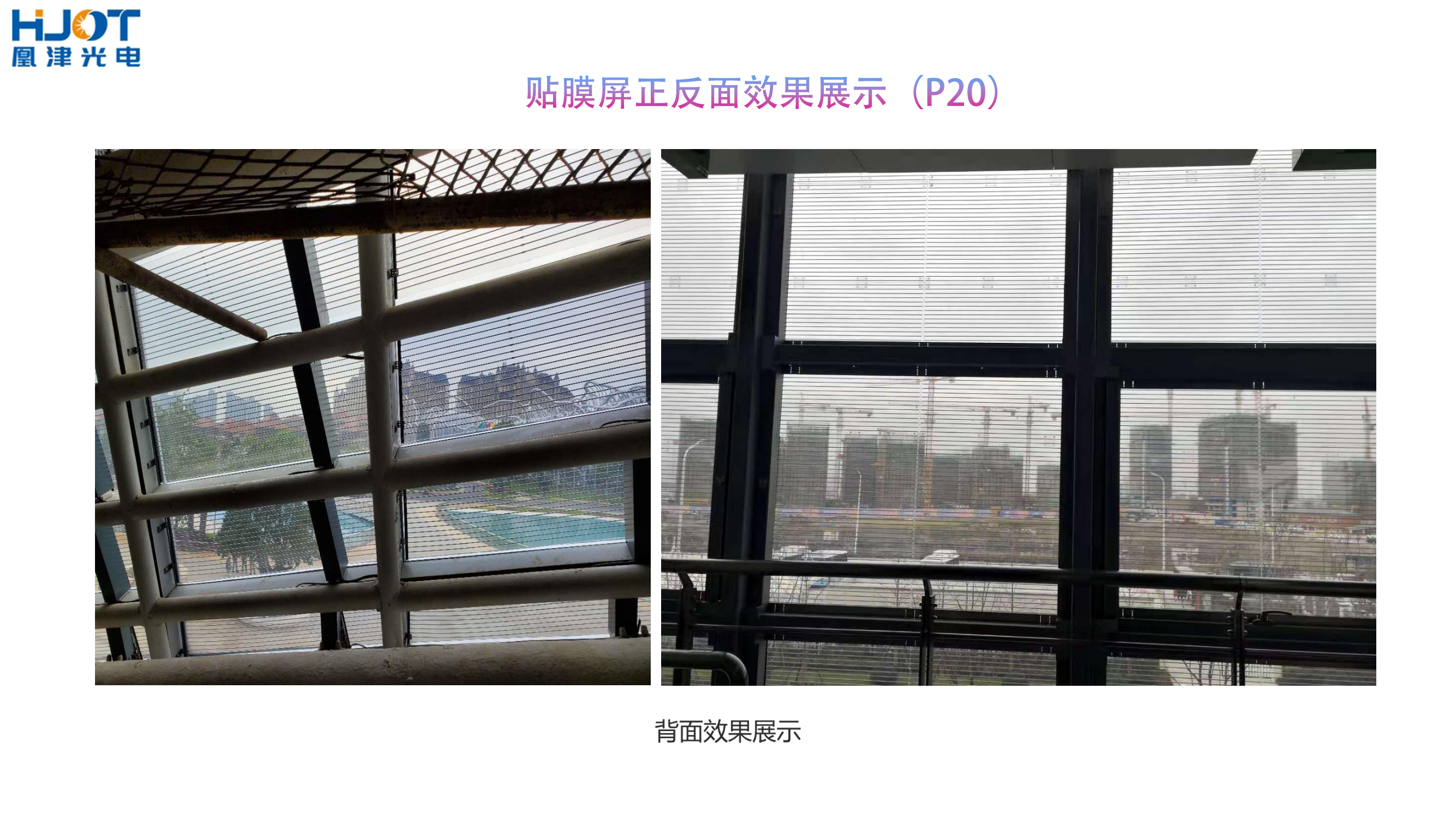 2.高透明度:LED貼膜屏具有高透明度。即使在顯示圖像時(shí),屏幕后方的背景或景物依然清晰可見,使得LED貼膜屏能夠與環(huán)境融為一體,創(chuàng)造出獨(dú)特的視覺效果。