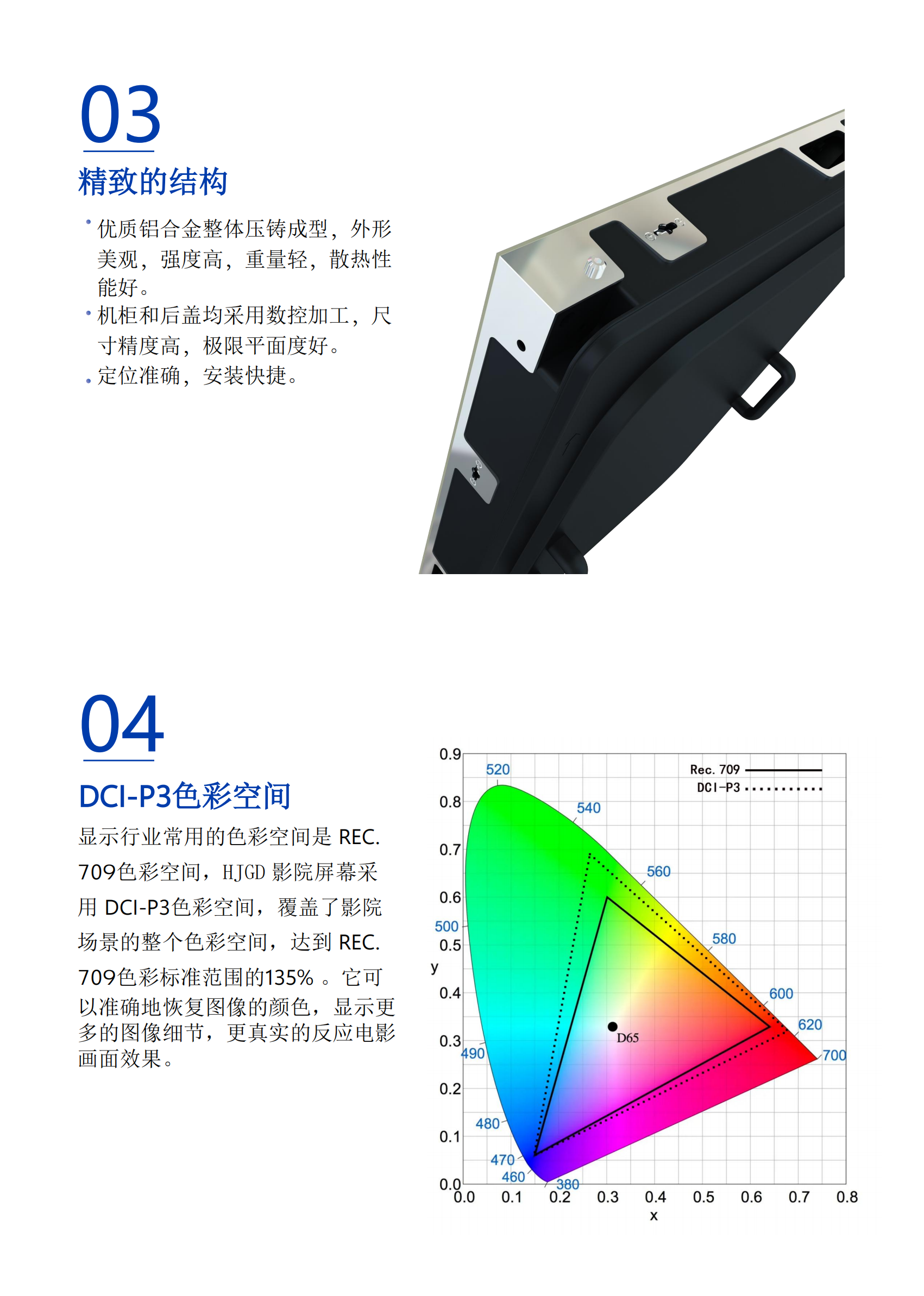 4.采用定制的 DCI色彩空間專用發(fā)光二極管,在超低亮度下提供高階灰度性能
